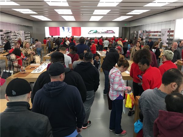 ▲蘋果零售店等待換電池的用戶