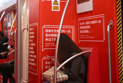 一段段來自網易云音樂評論中的扎心文案,被貼在地鐵內、地鐵車站內,讓行走的陌生人震動、觸發那一個個掩藏在人們身體內的真情開關。
